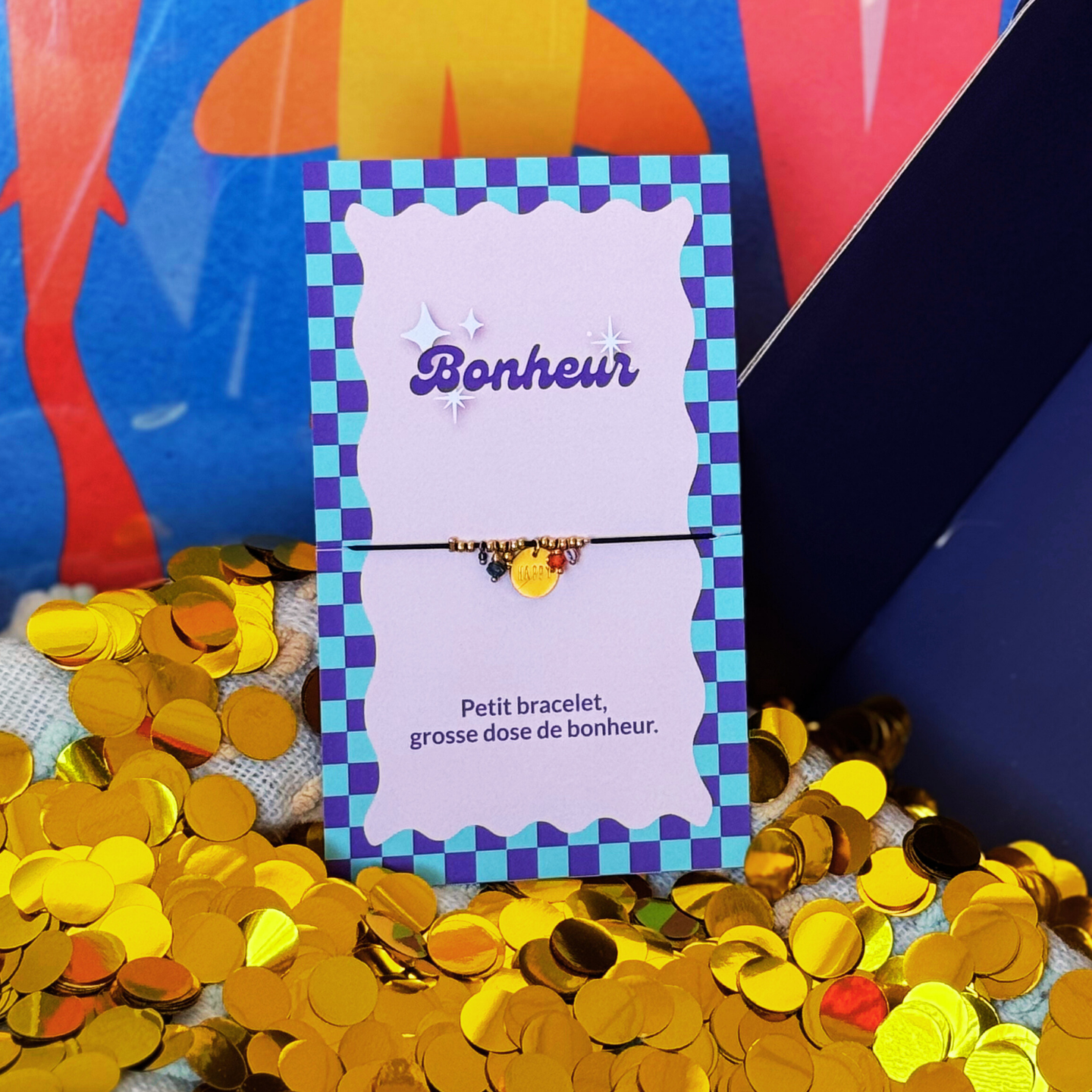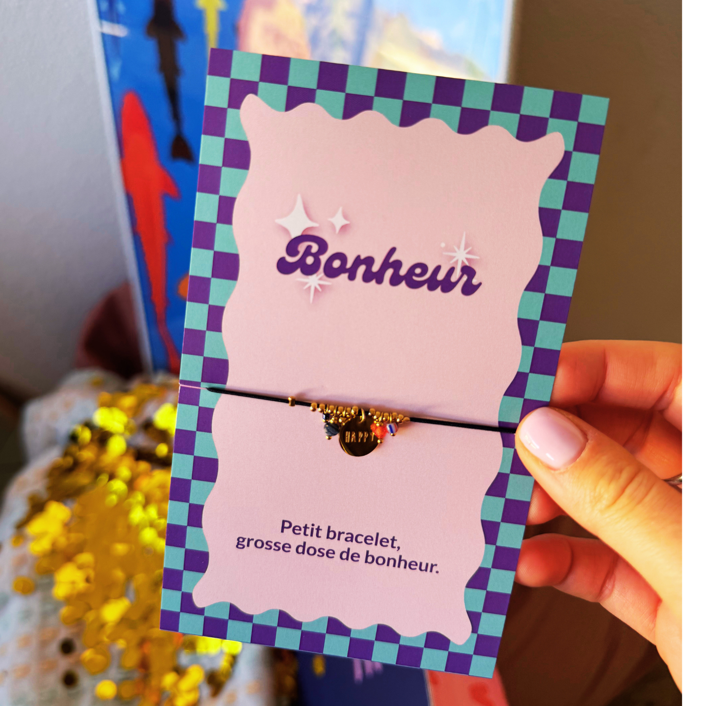 Un petit bracelet qui apporte une grosse dose de bonheur. Avec sa médaille “HAPPY” et ses petites perles pleines de good vibes, il diffuse la joie partout où il passe. Un cadeau parfait pour illuminer une journée, une semaine… ou une vie entière.