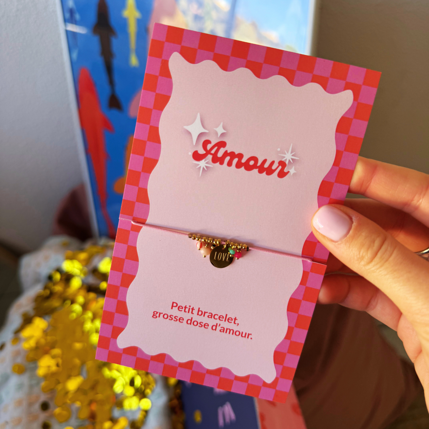 Un petit bracelet… mais une énorme dose d’amour. Avec sa médaille "LOVE" il est fin, coloré et rempli de good vibes. À offrir pour faire fondre un cœur, célébrer un lien précieux ou tout simplement rappeler “je t’aime” de la plus jolie façon. Léger, mignon, symbolique : l’effet “aww” garanti.