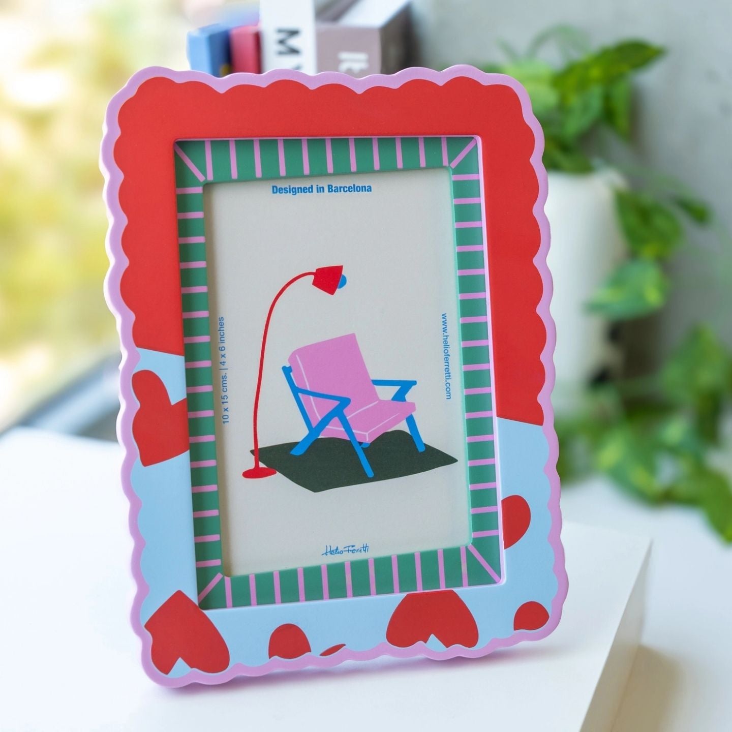 Avec ses couleurs pop, ses bords ondulés et ses petits cœurs, ce cadre ne passe clairement pas inaperçu. Il transforme n’importe quelle photo en souvenir (très) bien entouré !